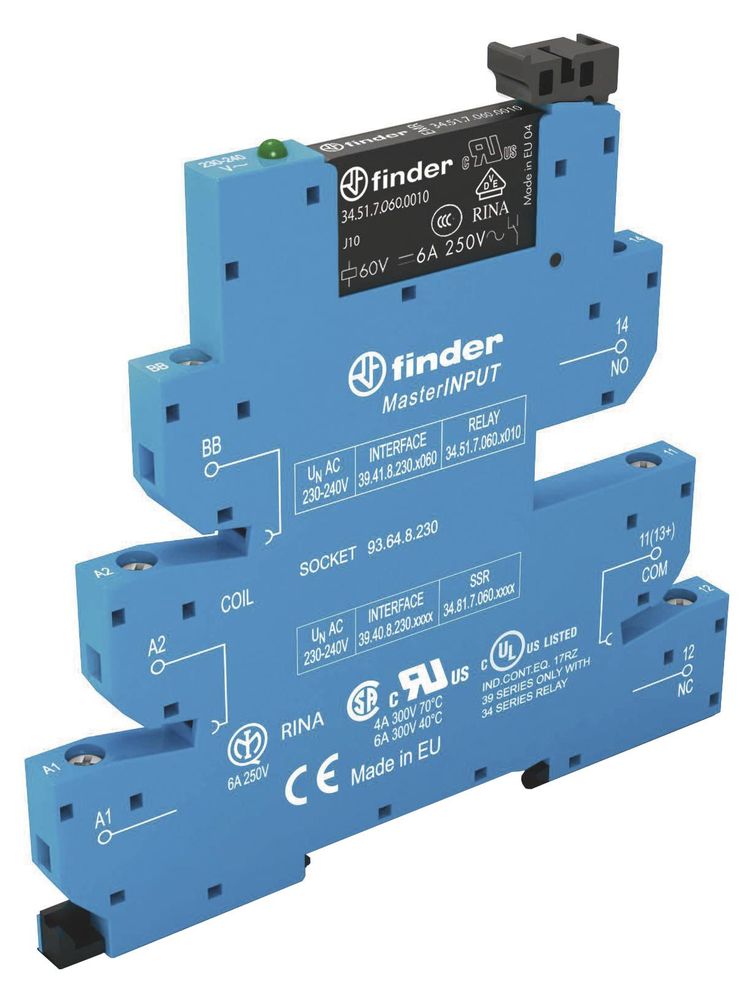 Finder 39.41.8.230.5060 Koppelrelais 6A 230VAC hartvergoldet MasterInput 1We