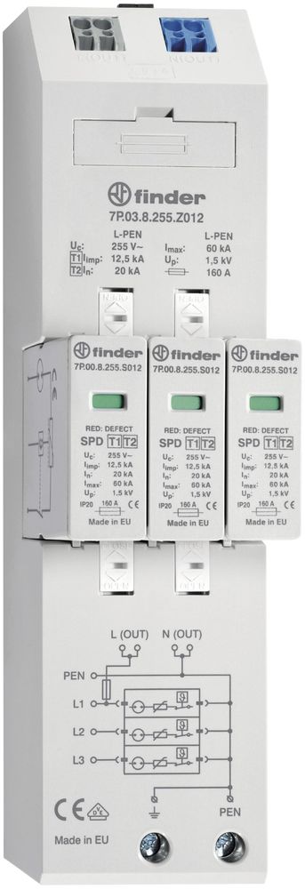 Finder 7P.03.8.255.Z012 Kombiableiter Typ 1+2 für dreiphasige TN-C Netze