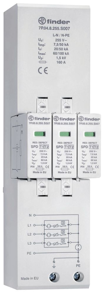 Finder 7P.04.8.255.S007 Kombiableiter Typ 1+2 für dreiphasige TN-S und TT Netz