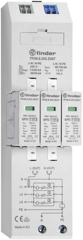 Finder 7P.04.8.255.Z007 Kombiableiter Typ 1+2 für dreiphasige TN-S und TT Netze