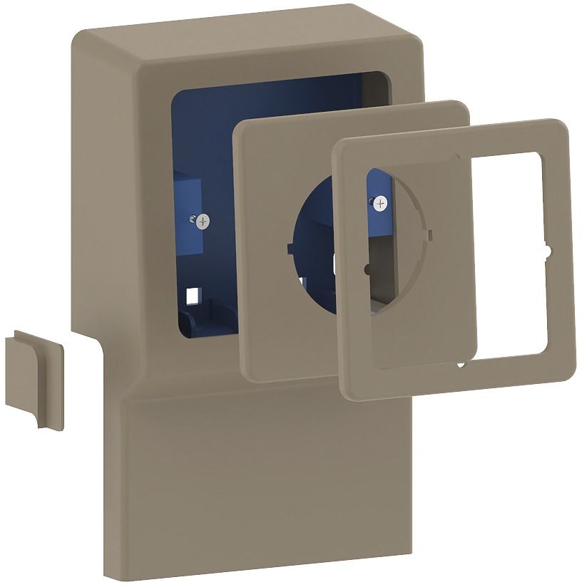 Hinweis: Die Oberteile der Sockelleistenkanäle lassen sich seitlich unter die Abdeckung des Geräteträgers schieben, wodurch die Abdeckung des Geräteträgers eine schnittkaschierende Funktion für die Oberteile der Sockelleistenkanäle leistet.