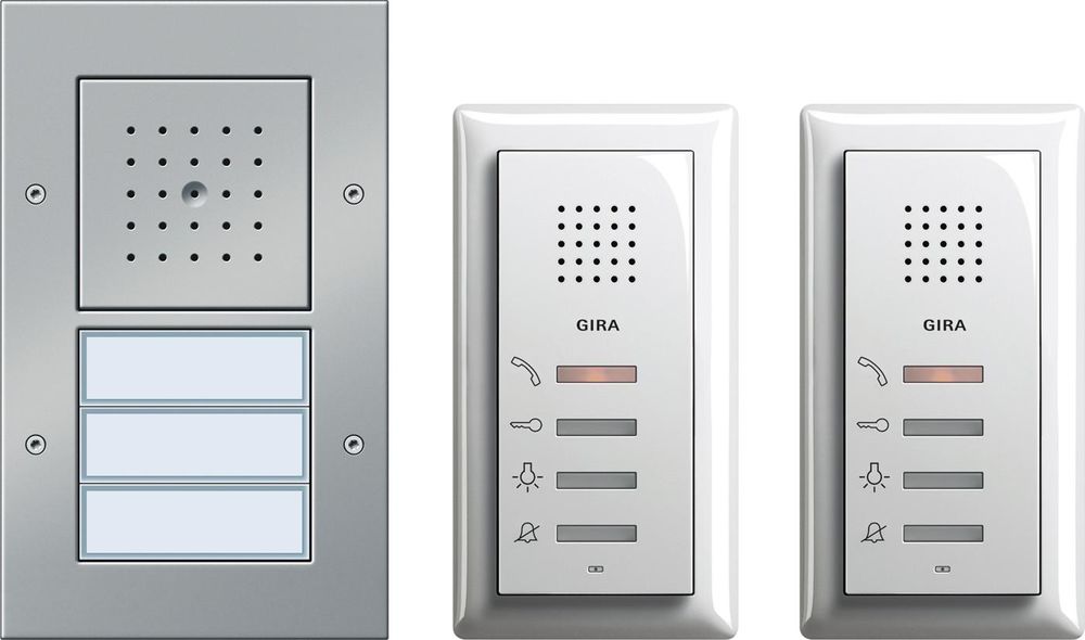 Der Artikel GIRA 049544 Zweifamilienhauspaket Audio Türkommunikation Farbe alu ist derzeit auf Lager