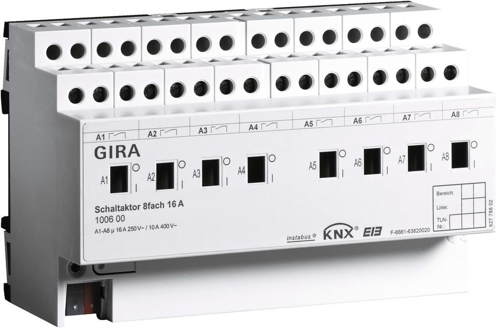 GIRA 100600 Schaltaktor 8-fach 16A KNX/EIB REG bieten wir Ihnen immer zum bestmöglichen Preis an. Einen Rabatt von 2% auf