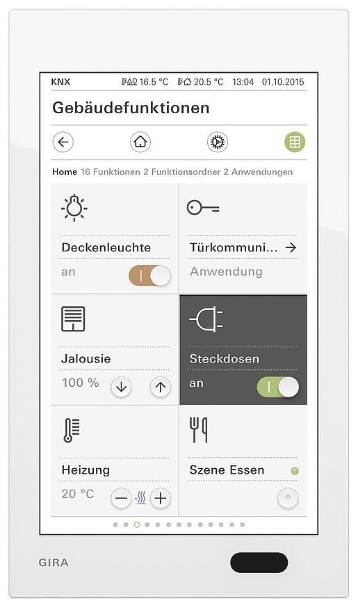 - Gira Wetterportal: Anzeige der Wetterprognose für bis zu fünf Orte.