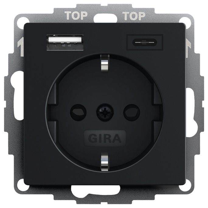 GIRA 2459005 SCHUKO SH USB-Spannungsvers 2f Typ A/C System 55 Schwarz m