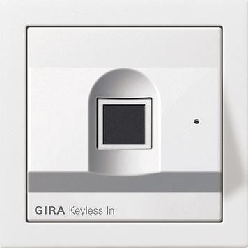 Gira Keyless In Fingerprint-LeseeinheitReinweiß glänzendMerkmale: Montage in eine Gerätedose. Stand-alone-Gerät oder in Kombination mit dem Gira Türkommunikations-System. Beim Stand-alone-Betrieb Nutzung der integrierten potenzialfreien Relaiskontakte für Schalthandlungen, z. B. für Türöffner mit eigener Spannungsversorgung (z. B. handelsüblicher Klingeltrafo). Inbetriebnahme durch Direkt-Konfiguration ohne PC oder Programmiersoftware.Ein- und Ausgänge: Schaltkontakt: Zwei Relais mit potenzialfreien Wechselkontakten Belastbarkeit AC DC 24 V 1,6 A. Zwei Anschlüsse für Spannungsversorgung. Fingerprintmodul als professionelles biometrisches Zutrittskontrollsystem basierend auf der Flächenscantechnologie der neuen Generation. Scannen der untersten Hautschicht per Hochfrequenz. Hohe Erkennungsrate und Manipulationssicherheit. Auswertung der einmaligen charakteristischen Merkmale des lebenden menschlichen Fingers. Lebenderkennung des Fingers. Bis zu 99 Finger lassen sich von der Fingerprint-Leseeinheit verwalten. Zuverlässige Erkennung von Fingern, die z. B. bei der Gartenarbeit leicht verletzt wurden (nur die oberste Hautschicht wurde verletzt). Datenschutz durch Verschlüsselungsverfahren. Schnelle Reaktionszeit vom Auflegen des Fingers bis zur Freigabe: bis zu 30 gespeicherte Finger ca. 1 s, bis zu 99 gespeicherte Finger ca. 3 s. Nachtdesign der Fingerprintfläche zur Orientierung mittels weißer LED-Beleuchtung. 360-Auflage des Fingers möglich. 3-farbige LED-Statusanzeige zur optischen Signalisierung bei der Programmierung und während der Bedienung. Master PIN-Nummer auf beiliegender versiegelter Sicherheitskarte, wenn der Administrator-Finger nicht mehr zur Verfügung steht. Das Gerät kann mit der beiliegenden Sicherheitskarte werkseitig zurückgesetzt werden. Quittiersummer zur akustischen Signalisierung für Anwender oder Installateur. Akustischer Warnton bei unberechtigter Entnahme des Fingerprintaufsatzes zur Sabotageerkennung. Sabotageschaltung mit Schaltaktor im Türkommunikations-System. Den beiden integrierten Wechslerrelais können unterschiedliche Finger zugeordnet werden, z. B. Daumen: Ansteuerung der Türöffnung, Zeigefinger: Schalten des Außenbeleuchtung.Ein- und Ausgänge: Steckerleiste Verbindungskabel für Gira Türkommunikations-System.Hinweise : Mit dem TKS-IP-Gateway können die Keyless In-Geräte an den Gira HomeServer angebunden werden. Dadurch sind intelligente Verknüpfungen möglich. So können z. B. temporäre oder einmalige Zugangsberechtigungen ganz einfach erteilt werden. Alle Daten inkl. der Zugangsberechtigungen lassen sich dann zentral und flexibel über den Gira HomeServer verwalten. Kinderfinger können i. d. R. erst ab einem Alter von 6 Jahren zuverlässig erkannt werden. Integration in das Profil 55 möglich.