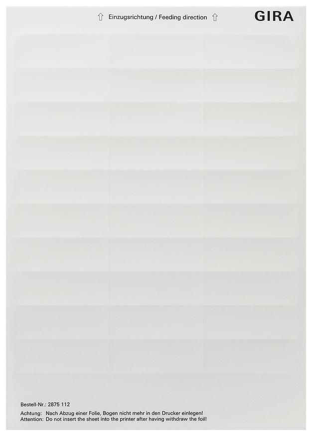 GIRA 2875112 Beschriftung 23,7x66,3mm Bögen Reinweiß