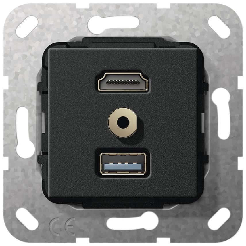 GIRA 568110 HDMI,USB 3.0 A,M Klinke Kabelpeitsche Einsatz Schwarz matt