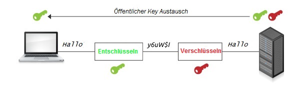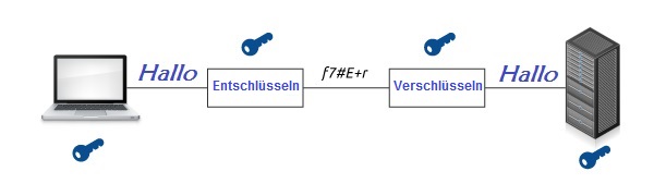 Symmetrische Schlüssel sind kleiner als asymmetrische, so dass weniger Rechenaufwand nötig ist. Allerdings haben symmetrische Schlüssel auch einen großen Nachteil:. Sie und der Empfänger müssen den gleichen Key besitzen. Wenn sie kurz zu Fuß zum Nachbarn laufen, und ihm den Schlüssel verraten können, ist das kein Problem. Sollten sie ihre Daten ( wesentlich wahrscheinlicher) allerdings um die halbe Welt verschicken, müssen sie sich um Datensicherheit Sorgen machen.