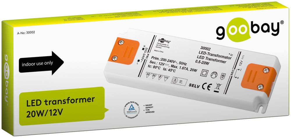 Der Artikel Goobay 30002 LED-Trafo 20W/12V - 12 Volt DC für LEDs bis 20 Watt Gesamtlast ist derzeit auf Lager
