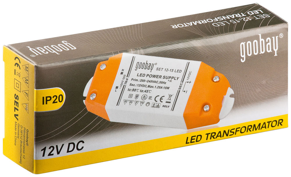 Der Artikel Goobay 30005 LED-Trafo 15W/12V - 12 Volt DC für LEDs bis 15 Watt Gesamtlast ist derzeit auf Lager