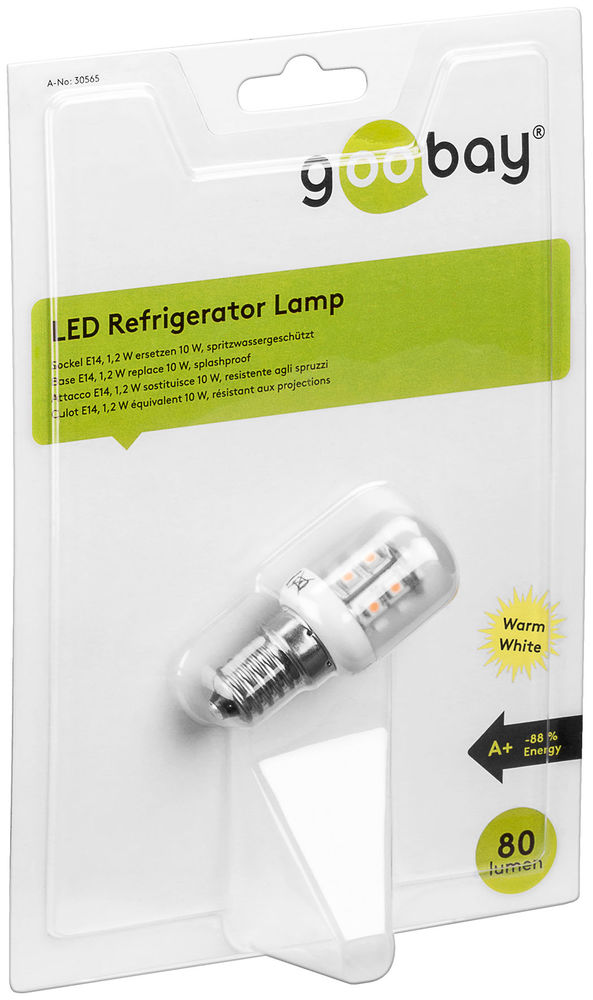 Der Artikel Goobay 30565 LED Kühlschranklampe, 1,2 W - Sockel E14, ersetzt 10 W ist derzeit auf Lager