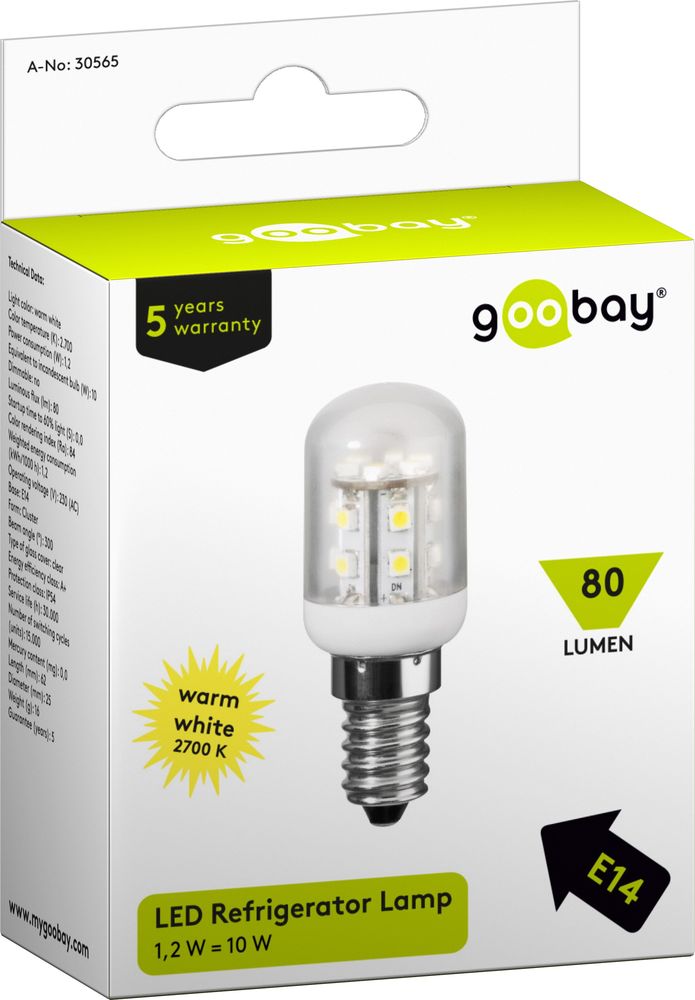 Goobay 30565 LED Kühlschranklampe, 1,2 W - Sockel E14, ersetzt 10 W