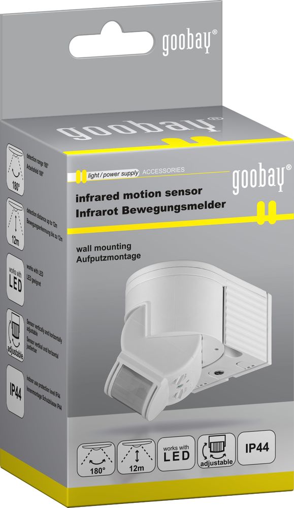 Der Artikel Goobay 95175 Bewegungsmelder - Aufputzbewegungsmelder zur Verwendung im Innen- und Außenbereich ist derzeit auf Lager