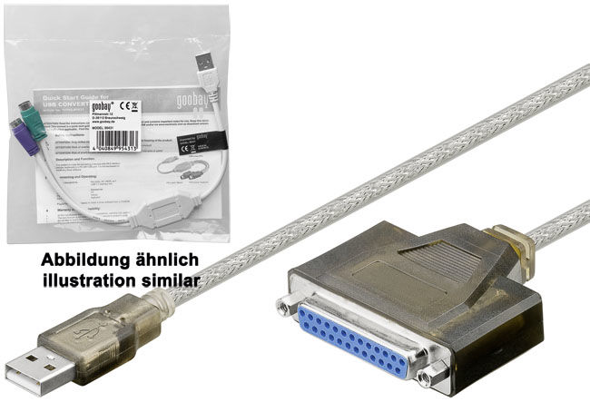Der Artikel Goobay 95433 USB-Druckerkabel - zum Anschluss von Druckern D-SUB 25 an den USB-Port ist derzeit auf Lager