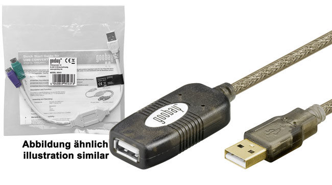 Der Artikel Goobay 95439 Aktives USB 2.0 Verlängerungskabel - mit integriertem Verstärker für eine verlustfreie Signalübertragung ist derzeit auf Lager