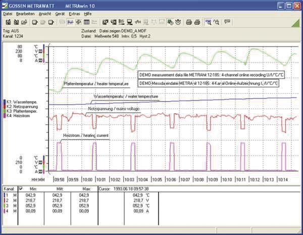 Systemsoftware für Multimeter METRAHIT. Mit METRAwin 10 und einem Schnittstellenadapter wird jedes METRAHIT-Multimeter zum professionellen PC-basierten Universal-Registriersystem. . Die Messwerte werden mittels METRAwin 10 von den Multimetern abgerufen, im PC verwaltet und als Yt-, als XY-Diagramm (bis 6 Kanäle) bzw. in Tabellenform (bis 10 Kanäle) dargestellt. Im Online-Betrieb werden die Messdaten auf bis zu vier virtuellen Zeigerinstrumenten bzw. Digitalanzeigen (mit einstellbaren Grenzwerten) angezeigt. Die leistungsfähige Online-Arithmetik ermöglicht Auswertung und Analyse der Daten. Die Abtastung ist - abhängig vom Multimetertyp und Messfunktion - in weiten Bereichen einstellbar. Die Messdaten können als ASCII-Datei exportiert oder über die Zwischenablage leicht in andere Windows-Applikationen (z. B. Word, Excel) übertragen werden. . METRAwin 10 /METRAHIT unterstützt die Multimetertypen (vollständige Liste siehe unten): METRAHIT Starline-Serie (AM XTRA, X-TRA, PM Serie, E- und S-Serie) in Kombination mit Schnittstellenadapter USB X-TRA (mehrkanalig). METRAHIT 30M in Kombination mit Schnittstellenadapter USB-Hit (nur 1-kanalig) oder BD232 (mehrkanalig) METRAHIT 22S-29S / M / C / EX / I in Kombination mit Schnittstellenadapter USB-Hit (nur 1-kanalig) oder BD232 bzw. Speicheradapter SI232-II oder SI232 (mehrkanalig) METRAHIT 12S-18S / U / T / One+ in Kombination mit Schnittstellenadapter RS232 (nur 1-kanalig) bzw. Speicheradapter SI232-II oder SI232 (mehrkanalig) Die Bedienoberfläche ist einstellbar auf die Sprachen Deutsch, Englisch, Französisch, Spanisch, Italienisch, Slowakisch. Die Software läuft unter Windows 98, 2000, XP, Vista, 7 (32/64), 8 (32/64) und 10 (32/64) - die aktuelle Version finden Sie unten zum Download..