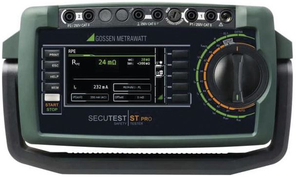 Prüfgerät mit normgerechten Prüfabläufen zur Prüfung der elektrischen Sicherheit von Geräten nach Reparatur und anläßlich einer Wiederholungsprüfung (DGUV Vorschrift 3, MPBetreibV) optimiert für IZYTRONIQ.. Der SECUTEST ST PRO BT COMFORT bietet alle Mess- und Prüfunktionen zur Prüfung der Wirksamkeit der Schutzmassnahmen bei elektrischen Geräten, medizinischen Geräten und Schweissgeräten - sowohl mit vordefinierten als auch mit programmierbaren Prüfsequenzen die entsprechend der Prüfstandard´s VDE 0701-0702, IEC/EN 62353 (VDE 0751) und IEC/EN 60974-4 (VDE 0544-4) notwendig sind.. Die neuen noch weiter optimierten Messzyklen sorgen für noch mehr Messungen pro Tag. Und die Bedienung ist so einfach, dass Prüfungen ohne besondere Kenntnisse durchführbar sind. Mit der SECUTEST PRO Service-Garantie können Sie sicher sein, dass Ihr Prüfgerät auch in 10 Jahren noch auf dem aktuellen Stand ist. Nicht umsonst ist der SECUTEST bei unseren Kunden teilweise seit über 20 Jahren im Einsatz - und der meistverkaufte Sicherheitstester für alle Geräte mit und ohne Stecker bis 400 Volt.. vorkonfigurierte und selbst programmierbare Prüfsequenzen zur schnellen Prüfung von elektrischen Geräten umfangreiches Datenverwaltungs- und Speicherkonzept für automatische Prüfsequenz und Einzelmessungen für bis zu 50.000 Datensätze Protokollerstellung in HTML auf USB Speicher Prüfsequenzen mit Hilfe der IZYTRONIQ selbst erstellen. Nutzerführung durch vorprogrammierte Prüfsequenzen nach Norm mit automatischer Bewertung - dadurch hervorragend geeignet für die Anwendung durch unterwiesene Personen schneller Zugriff auf die Mess- und Prüffunktionen durch Drehschalter, Direktwahltasten und SoftKeys Durch das kompakte, stoßsichere Gehäuse mit integrierten Gummischutz besonders geeignet für den mobilen Einsatz auch auf Baustellen und in Industrieumgebung Die einzigartige Mehrfachmessung ermöglicht die komfortable Dokumentation mehrerer Messstellen Durch umfangreiche Einstellmöglichkeiten für Sprache, Tastatur, Zeichensatz, Datum, Zeit sowie länderspezifische Normausführungen auch geeignet für den internationalen Einsatz. Sichere, umfassende und effiziente Prüfung von elektrischen Geräten nach Herstellerangaben durch programmierbare Prüfabläufe beliebiger Normen elektrischen Geräten nach DIN VDE 0701-0702 inklusive Verlängerungsleitungen und PRCDs (die neue SECUTEST ST-Serie ist bereits für die neue DIN EN 50678 vorbereitet. Die Prüfabläufe können über das Portal myGMC heruntergeladen und installiert werden.) elektrisch medizinischen Geräten nach IEC/EN 62353 (VDE 0751) Lichtbogenschweißeinrichtungen nach IEC/EN 60974-4 (VDE 0544-4) . Schutzleiterwiderstandsmessung (passiv, aktiv, mit 2 Sonden) 200mA und 10A Isolationswiderstandsmessung Ableitstrommessungen AC, DC, Effektiv Ersatz (alternative) Verfahren, direktem Verfahren, differenz Verfahren: Schutzleiterstrom, Berührungsstrom Geräteableitstrom, Patientenableitstrom, Ableitstrom vom Anwendungsteil Spannungsmessung: Berührungsspannung, SELV, PELV Spannung PRCD Auslösezeit Funktionstest (U,I,P,S,LF,f) Leitungstest (benötigt Zubehör z.B. EL1, AT3 oder VL2E) Durchgang, Kurzschluss, Polarität (Aderntausch) Temperaturmessung (für Pt100/Pt1000 Sensor. vorprogrammierter Abläufe (nach VDE 0701-0702) zur Prüfung von PRCDs vom Typ PRCD standard, SPE-PRCD, PRCD-S und PRCD-K Remotesteuerung durch IZYTRONIQ möglich (über USB) Zusätzliche Datenbankelemente Liegenschaft, Gebäude, Ebene und Raum um umfangreichere Datenbestände besser strukturieren zu können sowie Zusatzfelder Abteilung + Kostenstelle Multiprint - Ausdruck aller Protokolle eines Prüfobjekts mit 1 Tastendruck (auf Thermodrucker Z721S oder auf USB Stick) RFID Transponder (Z751R,S,T) lesen und schreiben (mit SCANBASE RFID Z751E) Datenexport aller Prüfobjekt-Stammdaten und Prüfergebnisse zur IZYTRONIQ und auf USB Stick Datenimport aller Prüfobjekt-Stammdaten ins Prüfgerät aus IZYTRONIQ oder vom USB-Stick pushprint - Datenexport einer Eizelmessung/Sequenzergebni
