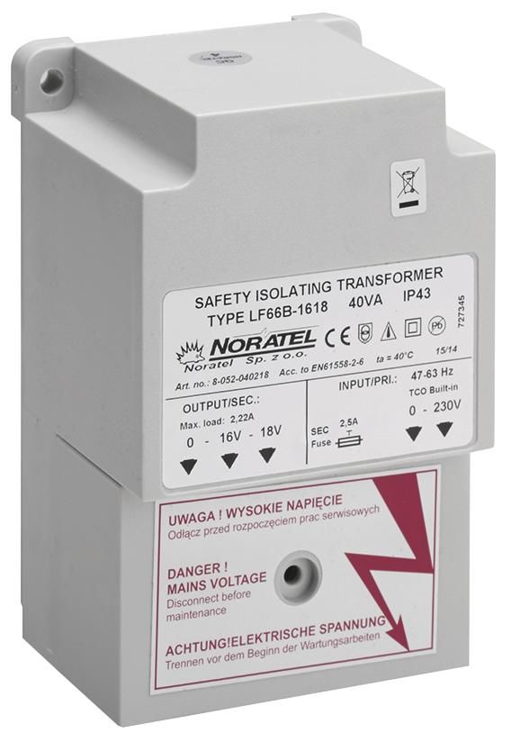 Grothe EP 18 Transformator LF66B-1618 230VAC/16+18VDC 40VA IP43 74824