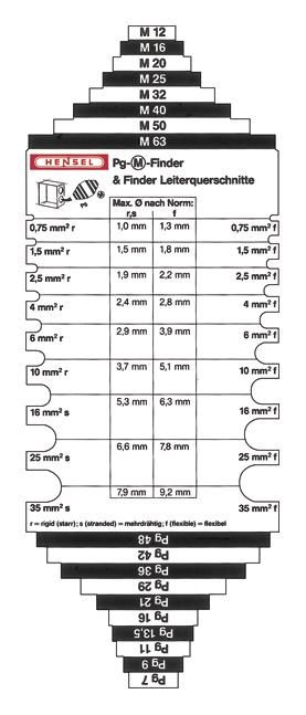Gustav Hensel 4012591103448 Hensel Pg-M- und Leitungsfinder Bestimmung d. Lochdurchmesser v.Gehäusen