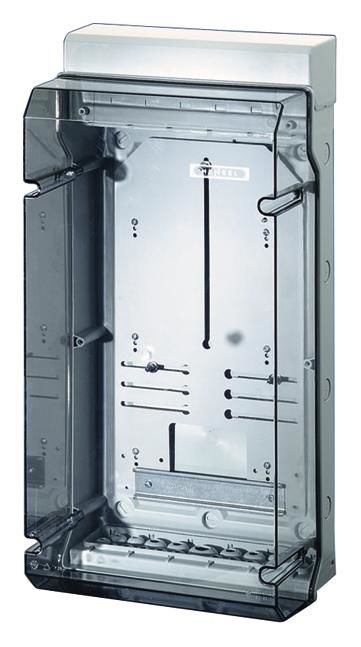 Schutzart IP 65, mit Zählertragplatten und Zählerbefestigungsschrauben, mit integrierten, elastischen Dichtmembranen zur Kabeleinführung, Einsatz im ungemessenen Bereich nach Absprache mit örtlichem EVU.