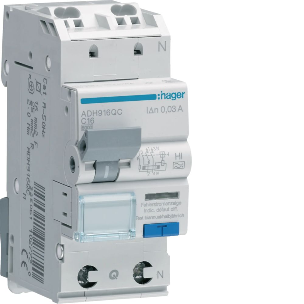 HAGER ADH916QC FehlerstromLeitungsschutzschalter 1P+N 6kA C-16A