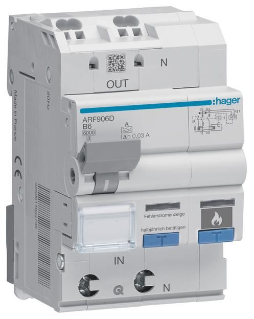 Hager ARF906D AFDD Fi-LS 1P+N 6kA B-6A 30mA 3M Fehlerlichtbogen/Brandschutzsch.