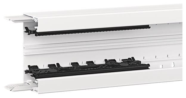 Mit Bodenlochung (allseitiger Bohrtolleranzausgleich) zur direkten Wandmontage und zusätzlicher Rechtecklochung zur werkzeuglosen Befestigung des Kanals mittels Clip-Technik auf Konsolen. Mit frontrastendem, werkzeuglosem Geräteeinbau zur Befestigung von Geräten und Geräteeinbaudosen mit Schnellbefestigung. Zusätzliches C-Profil als Geräteeinbaumöglichkeit. Kupplungen zur einfachen und passgenauen Kanalmontage, Trennwände und Leitungsrückhalteklammern als Zubehör erhältlich.