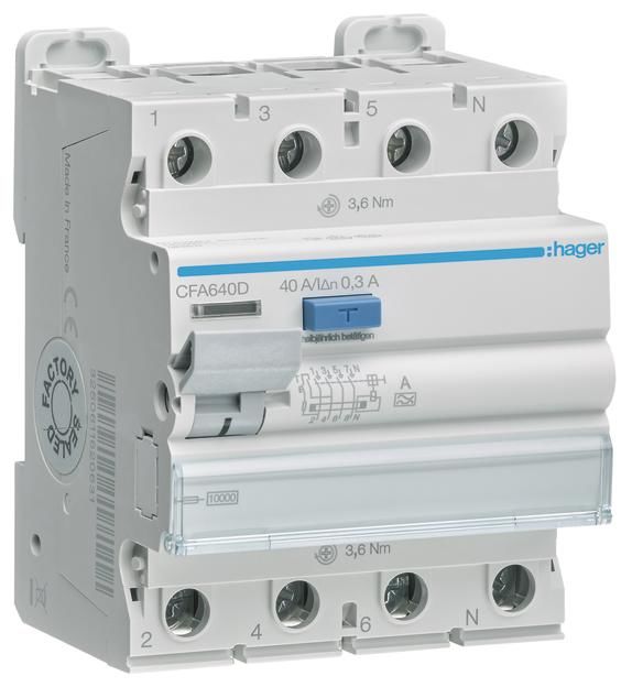 Hager CFA640D FI-Schalter 4P 10kA 40 300mA Typ A