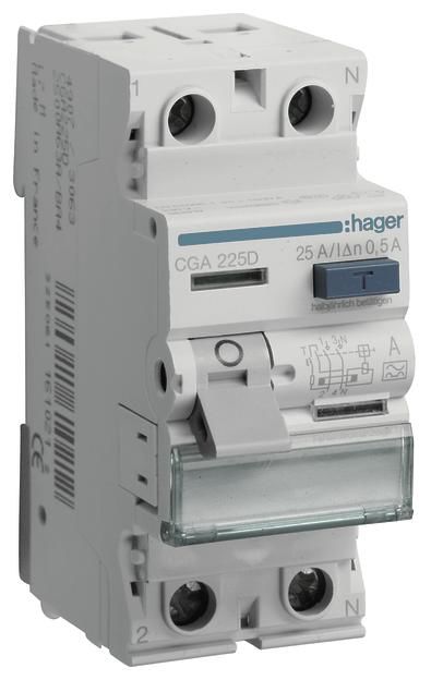 Hager CGA225D Fi-Schalter 2-pol 6kA 25A 500mA Typ A
