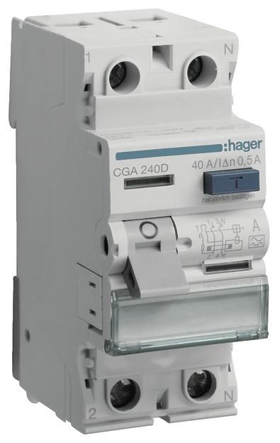 Hager CGA240D Fi-Schalter 2-pol 6kA 40A 500mA Typ A