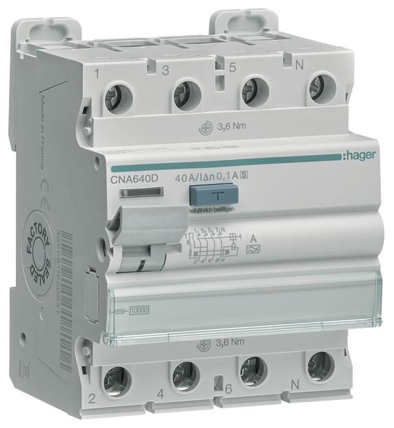 Hager CNA640D FI-Schalter 4P 10kA 40A 100mA Typ S