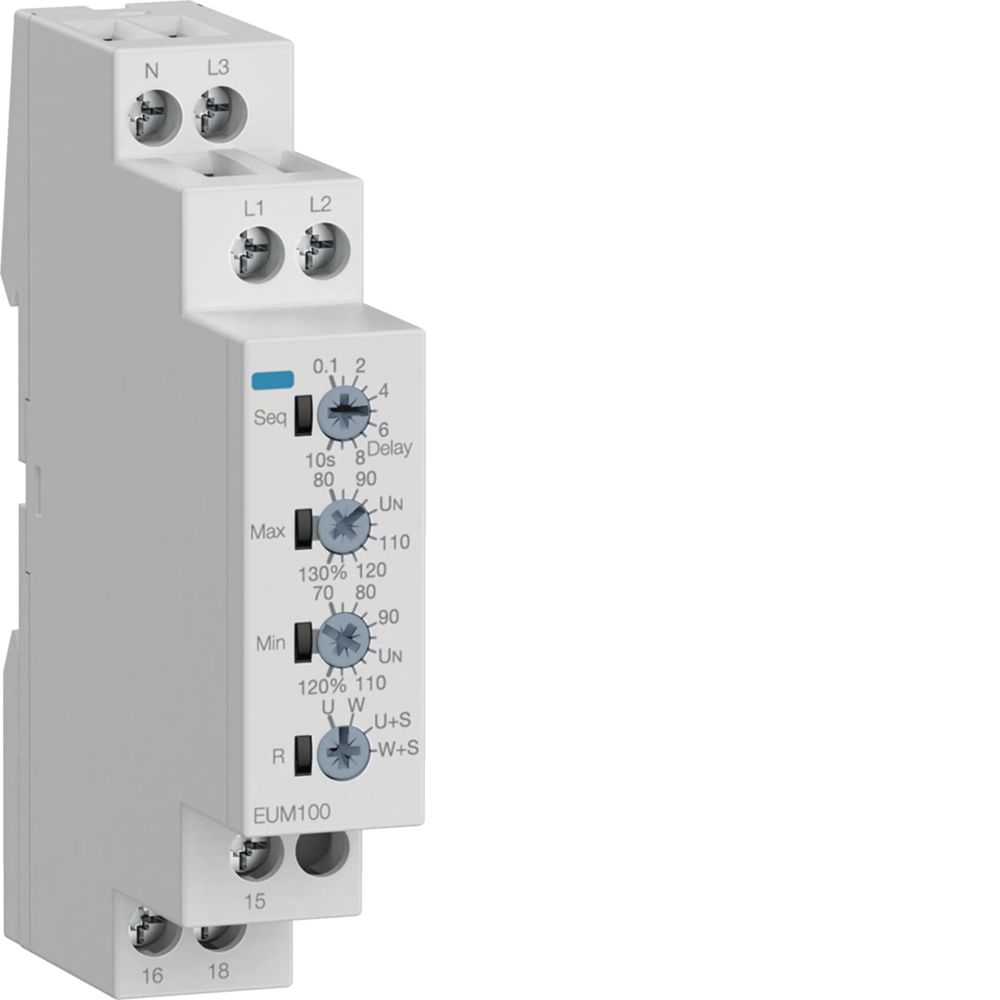 HAGER EUM100 Kontrollrelais Spannung einstellbar 1P+N/3P(N) 1We