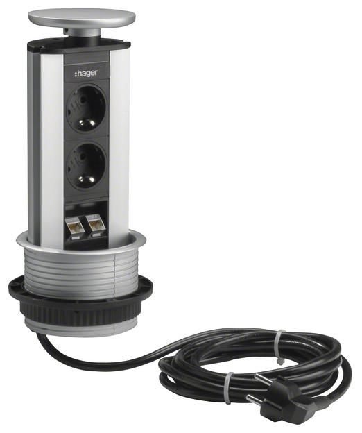 Hager G7044LAN Einbauanschlusseinheit Tisch mit 2Schuko lackiert alu