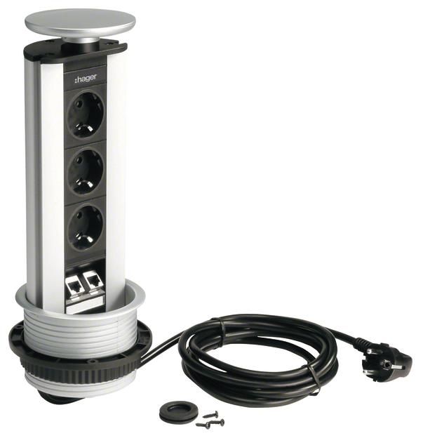 Hager G7045LAN Einbauanschlusseinheit Tisch mit 3Schuko lackiert alu