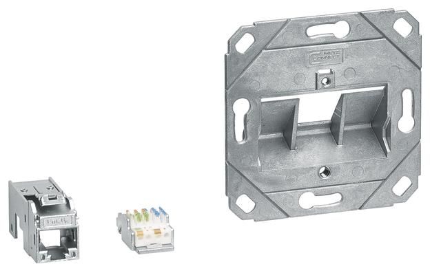 Zum Einbau in anreihbare Gerätedosen für Brüstungskanäle, mit reduzierter Einbautiefe zum bündigen Abschluß mit der Verschlußkontur des Brüstungskanals.