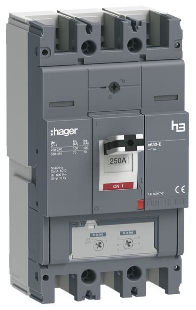 Hager HEJ250DR Leistungschalter h3 x630 TM ADJ 3P3D 250A 70kA FTC
