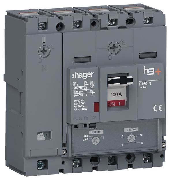 Hager HHS101DC Leistungsschalter h3+ P160 TM ADJ 4P4D N0-100% 100A 25kA CTC