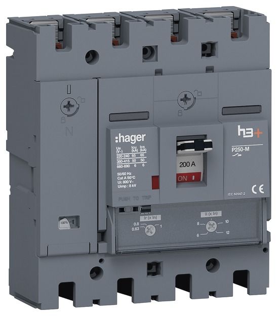Hager HMT201DR Leistungsschalter h3+ P250 TM ADJ 4P4D N0-100% 200A 50kA FTC