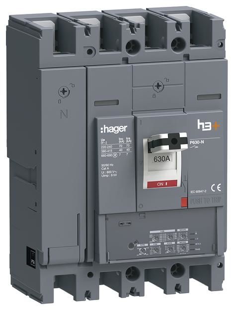 Hager HNW631JR Leistungschalter h3+ P630 LSI 4P4D N0-50-100% 630A 40kA FTC