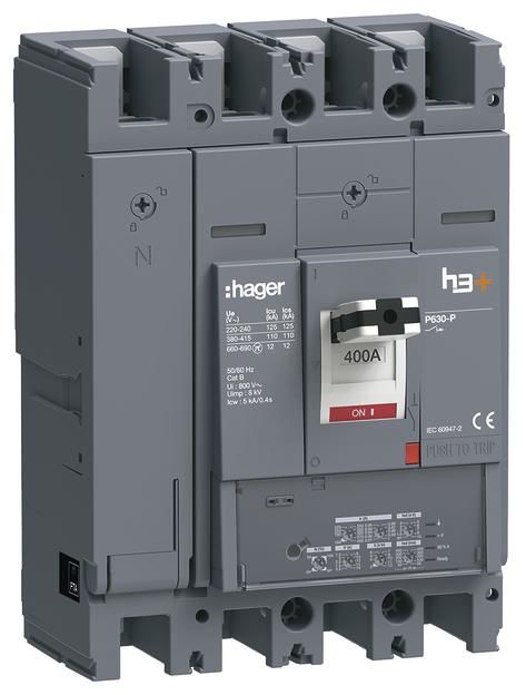 Hager HPW401JR Leistungschalter h3+ P630 LSI 4P4D N0-50-100% 400A 110kA FTC