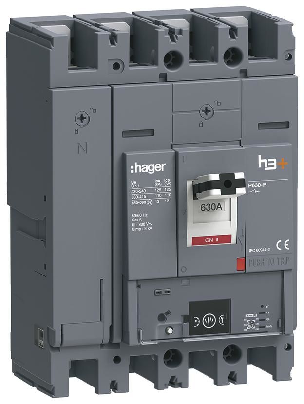 Hager HPW631NR Leistungschalter h3+ P630 Energy 4P4D N0-50-100% 630A 110kA