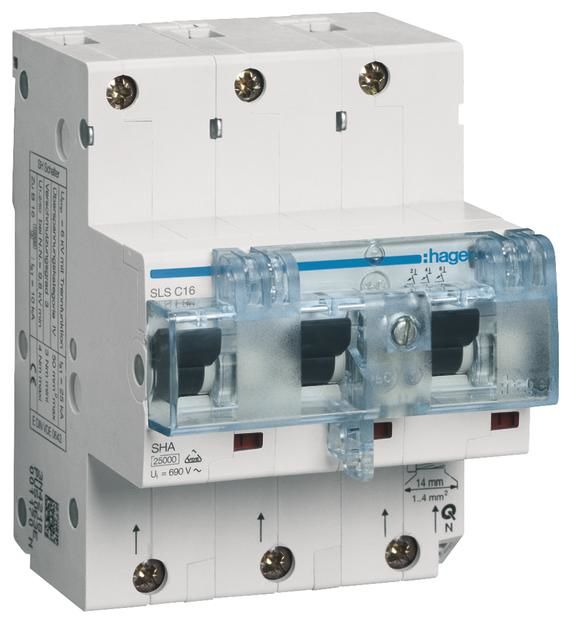 Hager HTN316C SLS Schalter 3p Cs-Charakt. 16A für Hutschienenmontage