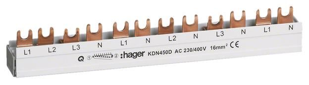 Hager KDN450D Phasenschiene 3P+N 80A Gabelanschluss 16mm² 12M