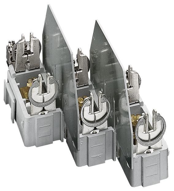 Größe 00 3 x 160 A, zum Aufrasten auf die Sammelschienen 12 x 5/10 mm, Schienenabstand 40 mm, im Abgang mit Schellenanschluß 70 ø