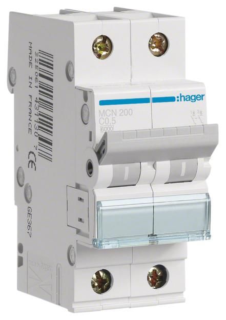Hager MCN200 LS-Schalter 2P 6kA C-0,5A 2M