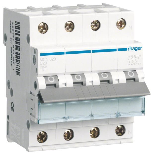 Hager MCN620 LS-Schalter 3P+N 6kA C-20A 4M