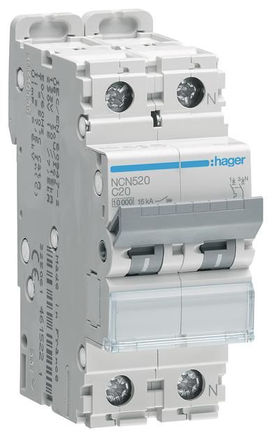 Hager NCN520 LS-Schalter 1P+N 10kA C-20A 2M
