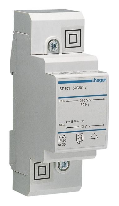 Hager ST301 Klingeltrafo 230V/8+12V 4VA 2PLE