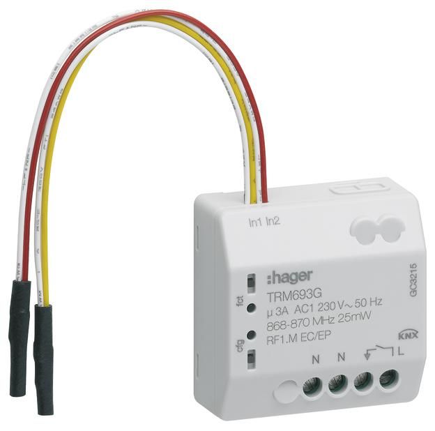 Hager TRM693G Funk UP Schaltaktor 1fach Binäreingang 2fach 230V 3A 3Draht